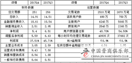 分析趣店最新的财务报表,不难发现,每年的第四季度,因为有“双十一”和“双十二”两个促销季,借贷需求旺盛,趣店本应该出现运营高峰。但是,2017年四季度,趣店的净利润增速为-17%,净利润、利润率、环比下降,主营业务成本、销售营销成本增加。同时,活跃借贷人数比三季度下降60万人,授信通过率降低,逾期率增加。