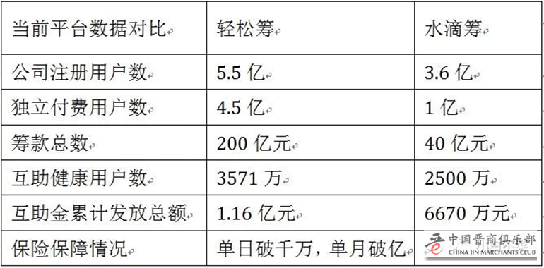 再来看看独立付费用户总数:轻松筹说自己有4.5亿,水滴筹说自己有1亿!