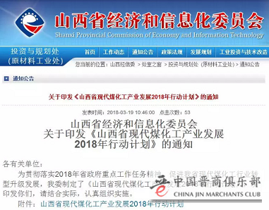 日前,山西省经信委印发了《山西省现代煤化工产业发展2018年行动计划》(下称《计划》),立足资源优势和产业基础,按照“企业、项目、产品、技术、园区(基地)”五位一体推进思路,积极实施现代煤化工示范工程,大力发展化工新材料和精细化工,实现由原料制造向材料制造转变,加快化肥、甲醇、氯碱等传统煤化工提质升级,推进煤炭资源清洁高效利用,通过产业高端化、产品差异化、生产集约化,构建山西特色煤化工产业体系。