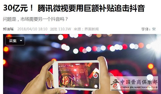 先说微视。腾讯的亲儿子,最近的一条大新闻是爆出腾讯要30亿元扶植微视对抗抖音:
