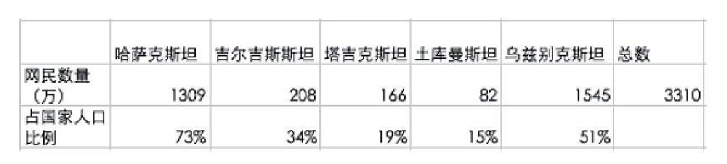 图二:中亚五国网民数