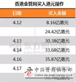 4月17日,香港金管局一天内两次分别再购入57.70亿元和33.76亿元。