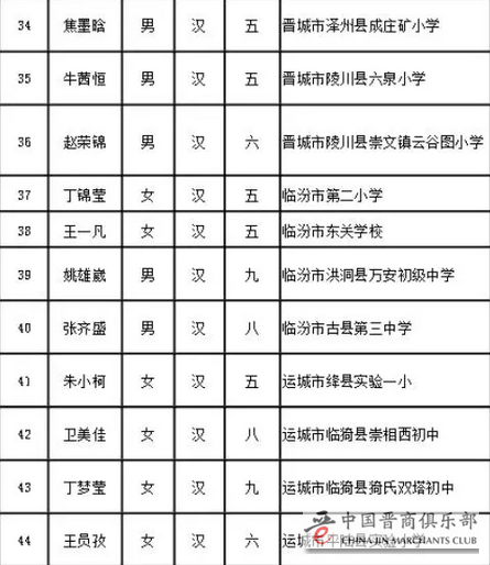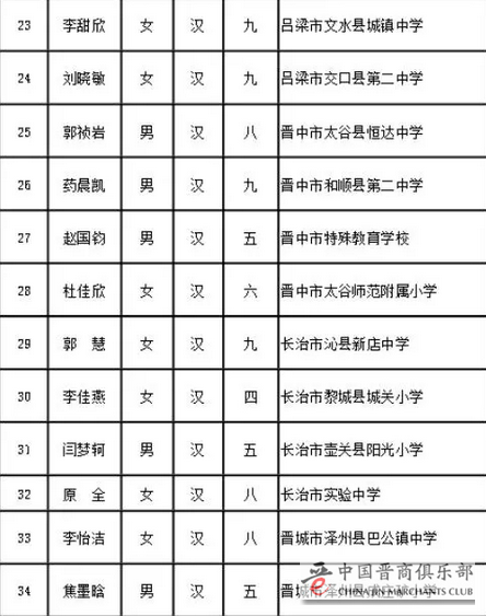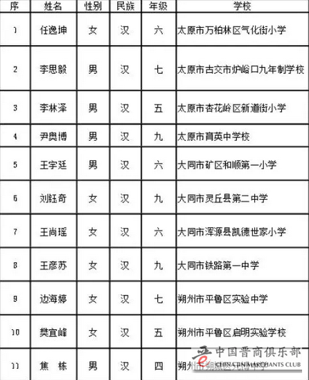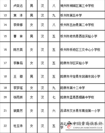 第十三届宋庆龄奖学金获奖候选人名单(山西)