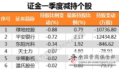 对于一季度证金公司减持的6家公司来说,绿地控股被减持最明显,持股比例下降了0.88%,目前证金对其持股不足1%。