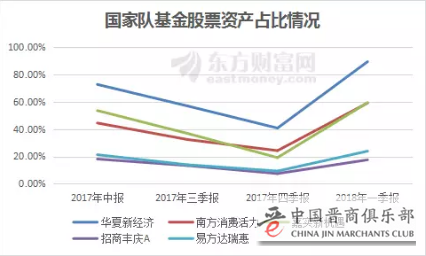 而根据五只国家队基金所公布的一季报来看,较2017年底,这五只基金的股票资产占基金总资产的比例均呈现大幅回升的态势。其中华夏新经济一季末股票持仓占比达到89.15%,超过了2017年中期水平。