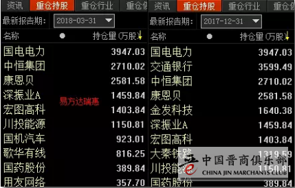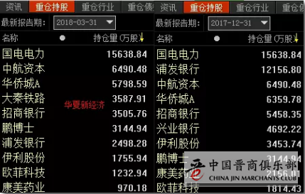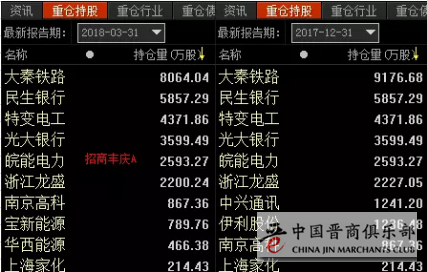 对于五只国家队基金在2018年一季度和2017年底的前十大重仓股的变动情况具体如下所示: