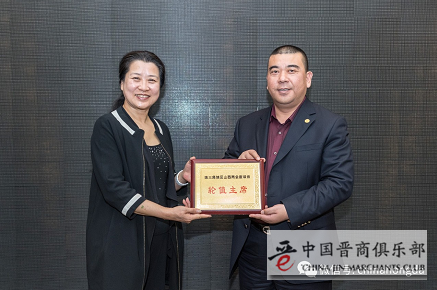 △ 隋淑静副主席为东莞市山西商会终身名誉会长袁斌先生颁发轮值主席牌匾