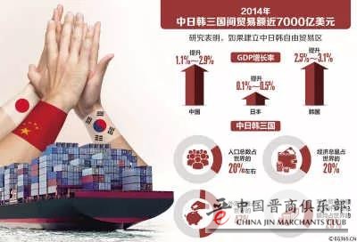 在2002年的中日韩领导人峰会上,三国共同决定,成立“中国—韩国—日本自由贸易区”。推动自贸区成立的原因很简单,市场和需求。