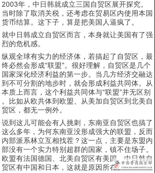 相比于FTZ小刀切黄牛,慢慢弄死人的方式(具体第三部分拿海南自贸区来讲),FTA搞出的动静最大,凡是涉及到与中国有关的FTA,美国全都在打压,最出名的就是“中日韩自贸区”。