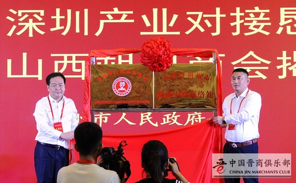 陈耳东副市长与李慧会长为深圳市山西朔州商会揭牌