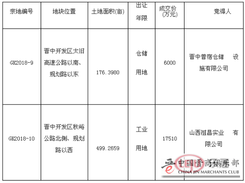 宗地编号GK2018-10地块位于晋中开发区秋峪公路北侧、规划路以西的工业用地,由山西祖昌实业有限公司以1.751亿元获得,其土地出让面积499.2659亩。