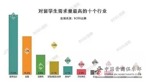 这是2017年调查统计的,我国对海外留学生需求量最高的十个行业
