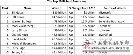 这是美国的十大富豪排行榜,前几名不用多介绍了