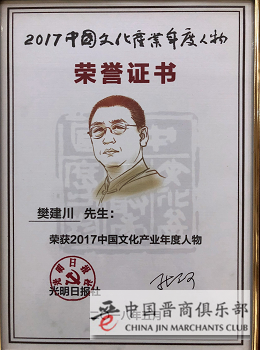 由光明日报社主办的“2017中国文化产业年度人物”揭晓典礼暨第六届中国文化产业主题峰会于今日在北京举行。建川博物馆馆主樊建川(中国晋商俱乐部荣誉顾问、四川省山西商会会长)成为十位获奖者之一。