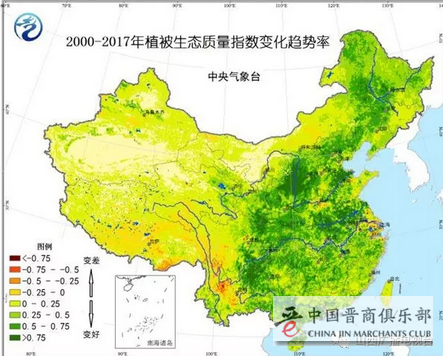 前不久,中国气象局发布的《2017年全国生态气象公报》传来好消息,2000-2017年,全国31个省(区、市)植被生态质量均呈改善趋势,其中山西、陕西、重庆、安徽、广西名列前5,我省植被生态质量改善最快。其中,2017年,我省植被生态质量改善程度创新世纪第三高数值。