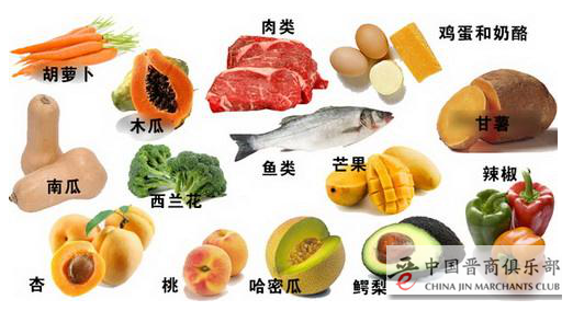 食品:小麦胚芽、猪腿肉、大豆、花生、里脊肉、火腿、黑米、鸡肝、胚芽米等。