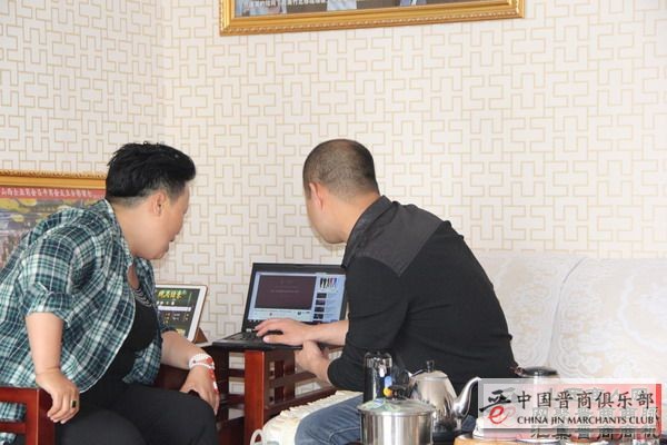 刘文斌向晋商红梅集团董事长孙红梅女士介绍了山西商人网以及中国晋商俱乐部的发展历程,并且向孙红梅董事长展示了历届晋商年会视频和晋商八友记的相关视频。
