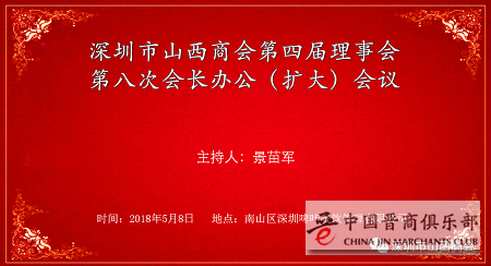 会前,还召开了深圳市山西商会第四届理事会第八次会长办公(扩大)会议。讨论通过了相关议程并提请理事会进行表决。