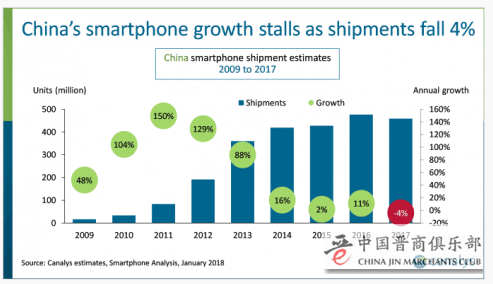 事实上,在这轮负增长来临之前,国产智能手机的增速就已经呈现出了明显的下降趋势。在市场调研机构Canalys公布的报告中,我们看到,事实上2015年国内智能手机同比增速就已经从2014年的16%下降到了2%,在增速上呈现出了一种断崖式的下跌趋势。