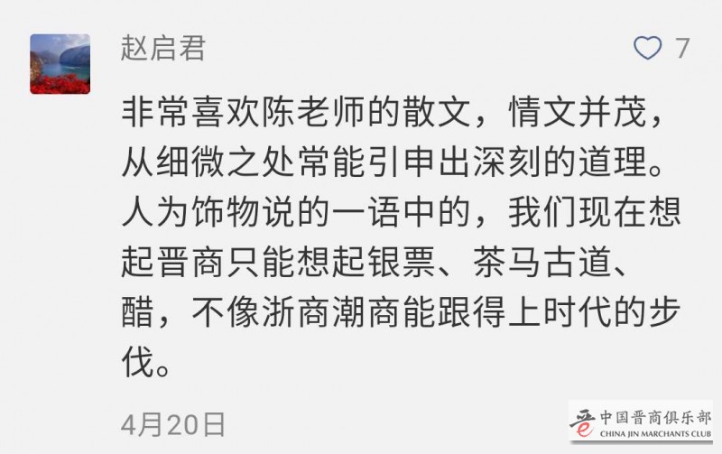 2018年4月12日,陈春花女士在公众微信号“春暖花开”发表了一篇【有声散文】陈春花:晋商缘何可以跟上时代?