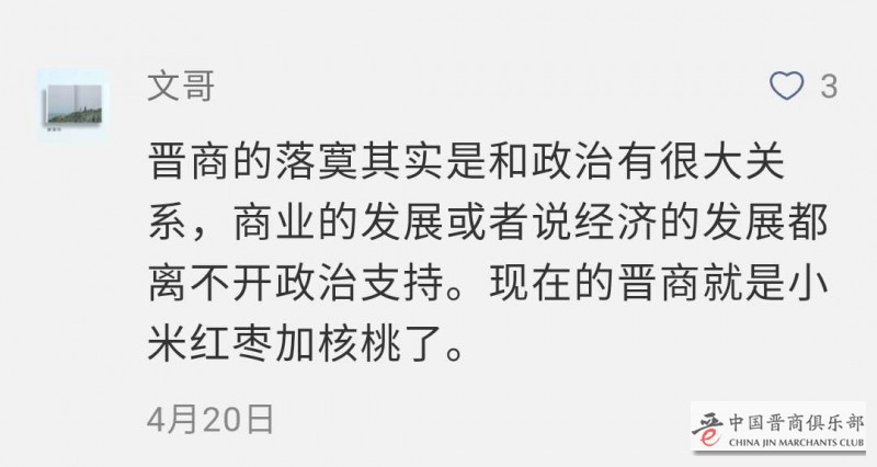 晚上,刚好看央视《对话》栏目探讨晋商的「丰德票号」是否应该变革的话题,围绕着是否要保留「丰德票号」展开讨论,嘉宾们各抒己见,总的一个思想是应该改革。结论是正确的,但是对于更多的人来说,晋商在今天为什么没有往日的辉煌才是引发思考的关键。