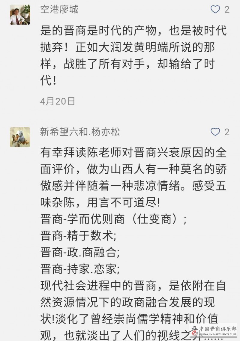 中国晋商俱乐部十年来,专注研究如何使当代晋商重塑当年的“晋商辉煌”,2016年刘文斌秘书长明确提出“晋商生态”理念,当代晋商商帮的发展进入了新的时期。