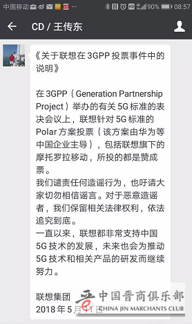 随后,联想CMO王传东发布了一个声明称,联想针对5G标准的Polar方案投票(该方案由华为、中国移动等中国企业主导),包括联想旗下的摩托罗拉移动,所投的都是赞成票。