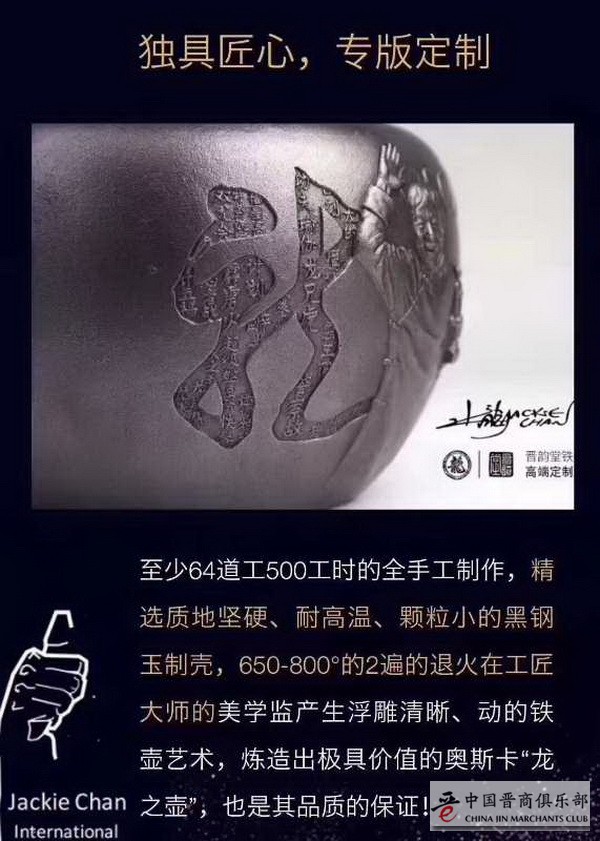 这把全球限量999把成龙大哥奥斯卡终生成就奖纪念版《龙之壶》由晋韵堂设计,制作,出品。