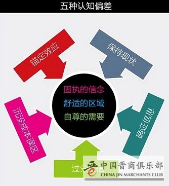 人的认知活动特点有助于提高判断和决策的效率,但也会导致一些认知偏差。常见的认知偏差包括锚定效应、保持现状的倾向、沉没成本误区、确证信息和过度自信的偏见。这些认知偏差的共同特点,就是会让决策者的头脑中形成固执的信念,对一些不同的信息不够敏感,从而产生有偏差的决策甚至是错误的决策。