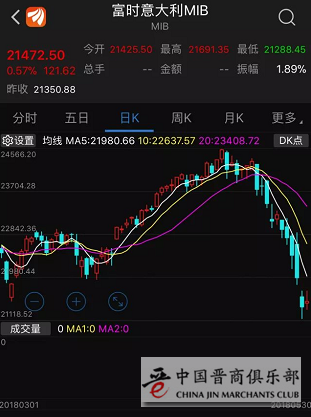 亲欧派与疑欧派的大乱斗使意大利金融市场持续受挫。29日,意大利富时MIB指数连跌五个交易日,收跌2.65%,报21350.88点。自5月7日以来,该指数已经累计跌逾13%。