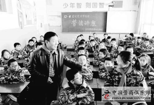 12月4日,在长治城区新华小学五年级一班教室,山西北野律师事务所的郭起宏在给同学们讲解宪法的由来。梁栋摄
