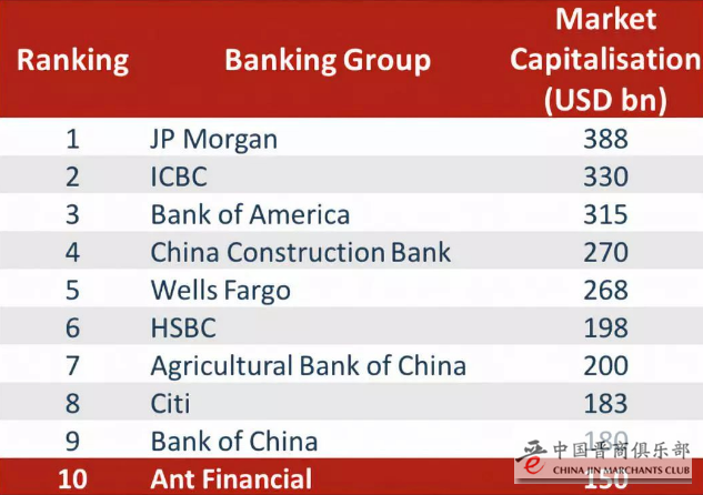 外媒评论称,目前,全球排名在前的银行集团都有几十年甚至几百年的历史,而蚂蚁金服仅仅才成立几年,其估值已经能够挤入全球前十。