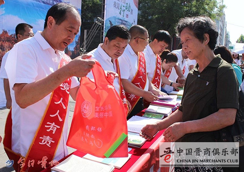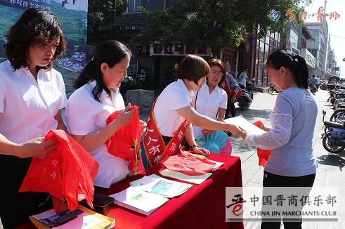 共青团霍州市委、市环保局、市公安局等部门干部职工,通过向过往行人免费发放宣传资料、倡议书、环保手提袋等方式宣传环保理念、环保知识、环保法律法规。