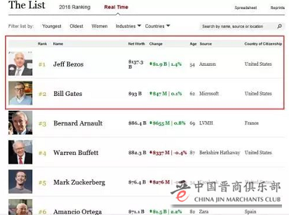 福布斯实时富豪榜提供的数据显示,贝佐斯目前的身家为1373亿美元,稳坐全球首富宝座,就连此前连续多年的首富盖茨都难以抗衡,落后443亿元,几乎少了一个马云的身家。