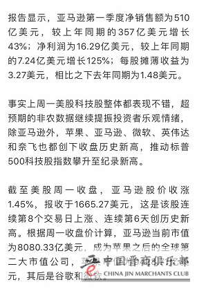 亚马逊市值超8000亿美元