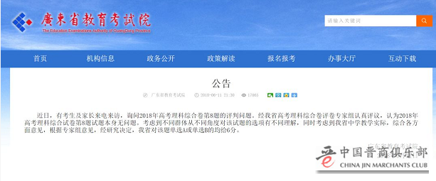 高考结束后,2018年高考理科综合全国I卷的试卷第8题引发了讨论。经各省专家评议,2018年高考理科综合全国I卷中第8题,考生单选A或单选B均给6分,目前已经发布公告的省份有广东、福建、河南、安徽、江西、湖北、山东、河北、山西、湖南。