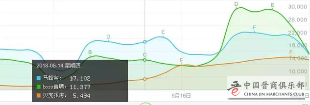 马蜂窝、BOSS直聘、贝壳找房的百度指数图
