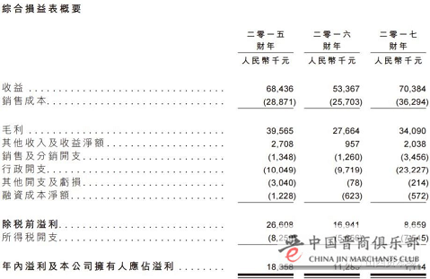 山西资本圈注意到,怡园酒业2015至2017三个财年分别实现营收6843.6万元、5336.7万元、7038.4万元,净利润分别为1835.8万元、1128.5万元、 111.4万元,毛利率分别为57.8%、51.8%及48.4%,盈利能力呈逐年降低趋势。