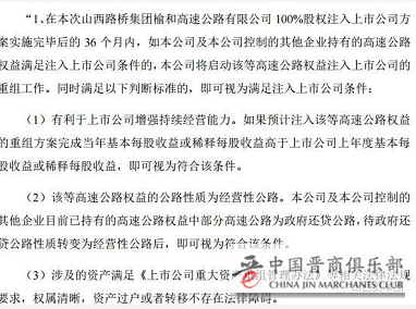 值得注意的是,山西三维26日晚间披露的此次重大资产重组草案修订稿中显示,山西交控集团除了承诺山西三维为集团高速公路资产的唯一上市平台外,还进一步明确了上述承诺适合实施的判断标准、履约期限、启动高速公路资产注入工作的具体条件及条件成熟的判断标准。