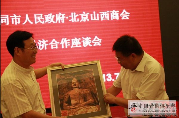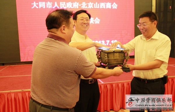 大同市市委市政府向北京山西企业商会赠送了礼品;北京山西企业商会则向大同市委市政府赠送由会员单位格申工艺公司提供的“奥运缶”做为礼品。