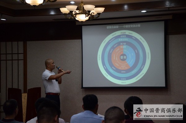 晋商生态研究院院长、中国晋商俱乐部秘书长刘文斌现场为大家介绍了晋商生态全图,从数据层、商户层、掌柜层、战略层、开放层五个圈层系统介绍了晋商生态的构成。