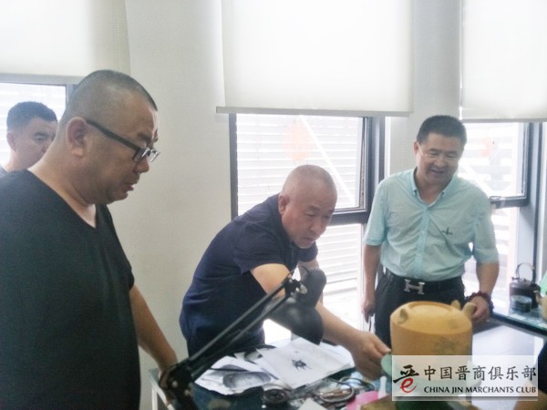在“铁在说”晋韵堂总店,河南晋商一行了解了正在制作胚体的“全球首款晋商牌铁壶融与和”,刘文斌秘书长向大家现场介绍了这款铁壶的创作理念,河南晋商考察团了解了“晋韵堂”的产品,并且与晋韵堂董事长晋战平围绕如何更好地将“泽州铁器”在中原大地推广进行了深度交流,中国晋商俱乐部副理事长彭晋峰、石勇提出了继“全球首款晋商牌铁壶”之后再打造一款“土豪级晋商铁壶”的建议,中国晋商俱乐部秘书长刘文斌与晋韵堂董事长晋战平表示将研究此方案。