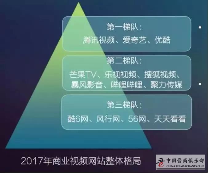 目前,中国网络视频的生态格局已经越发明显,第一梯队的是腾讯视频、爱奇艺(出自百度)、优酷(阿里旗下),由财大气粗的BAT三巨头把持。