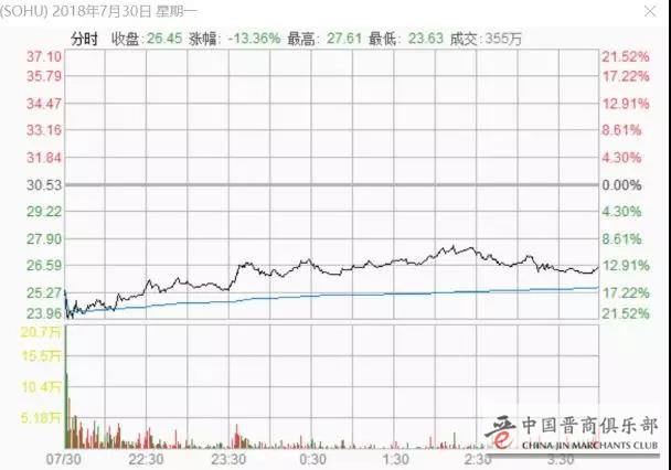 与Facebook一样,由于低于分析师的预期,搜狐开盘股价即大跌21.52%,截至收盘跌幅高达13.36%。