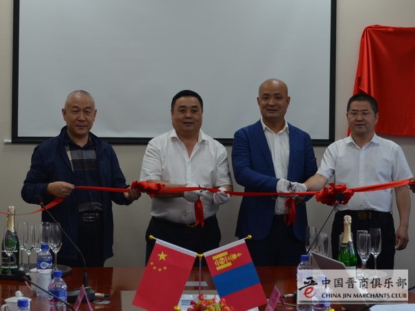 中国晋商俱乐部副理事长彭晋峰、石勇、史光荣与刘文斌秘书长共同为蒙古国晋商俱乐部正式挂牌进行剪彩,并且为蒙古国晋商俱乐部正式揭牌。