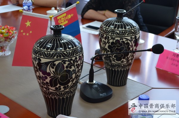 在本次揭牌仪式中,晋商优品也正式作为当代晋商礼仪融入了晋商生态,副理事长彭晋峰和石勇分别代表中国晋商俱乐部向蒙古国晋商俱乐部赠送了山西非物质文化遗产泽州铁器铁壶“龙壶”、晋风壶,秘书长刘文斌向蒙古国晋商俱乐部赠送了山西非物质文化遗产刻花瓷“梅瓶”一对。