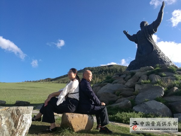 石勇副理事长、秘书长刘文斌在成吉思汗像前祈福晋商