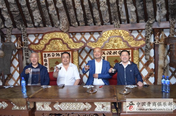 中国晋商俱乐部副理事长史光荣、彭晋峰、石勇和秘书长刘文斌在蒙古大营