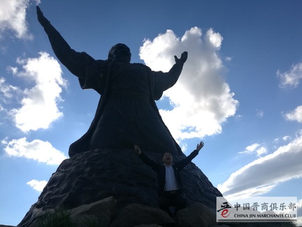 在蒙古国晋商俱乐部揭牌仪式结束之后,晋商生态国际行蒙古国商务考察团一行参观了乌兰巴托蒙古大营,在成吉思汗祈祷塑像面前,在乌力吉巴雅尔秘书长的解说下进一步了解了蒙古国的历史特点。