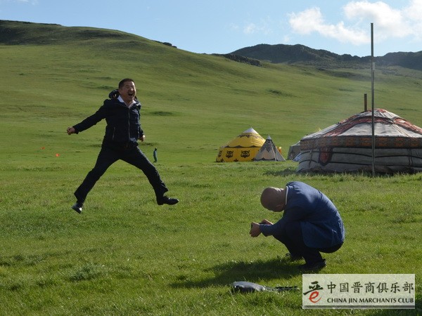 面对蒙古国的蓝天白云和绿油油的大草原,晋商考察团成员异常兴奋,通过各种形式表达了对蒙古大草原的热爱,对老晋商走西口精神的追忆。